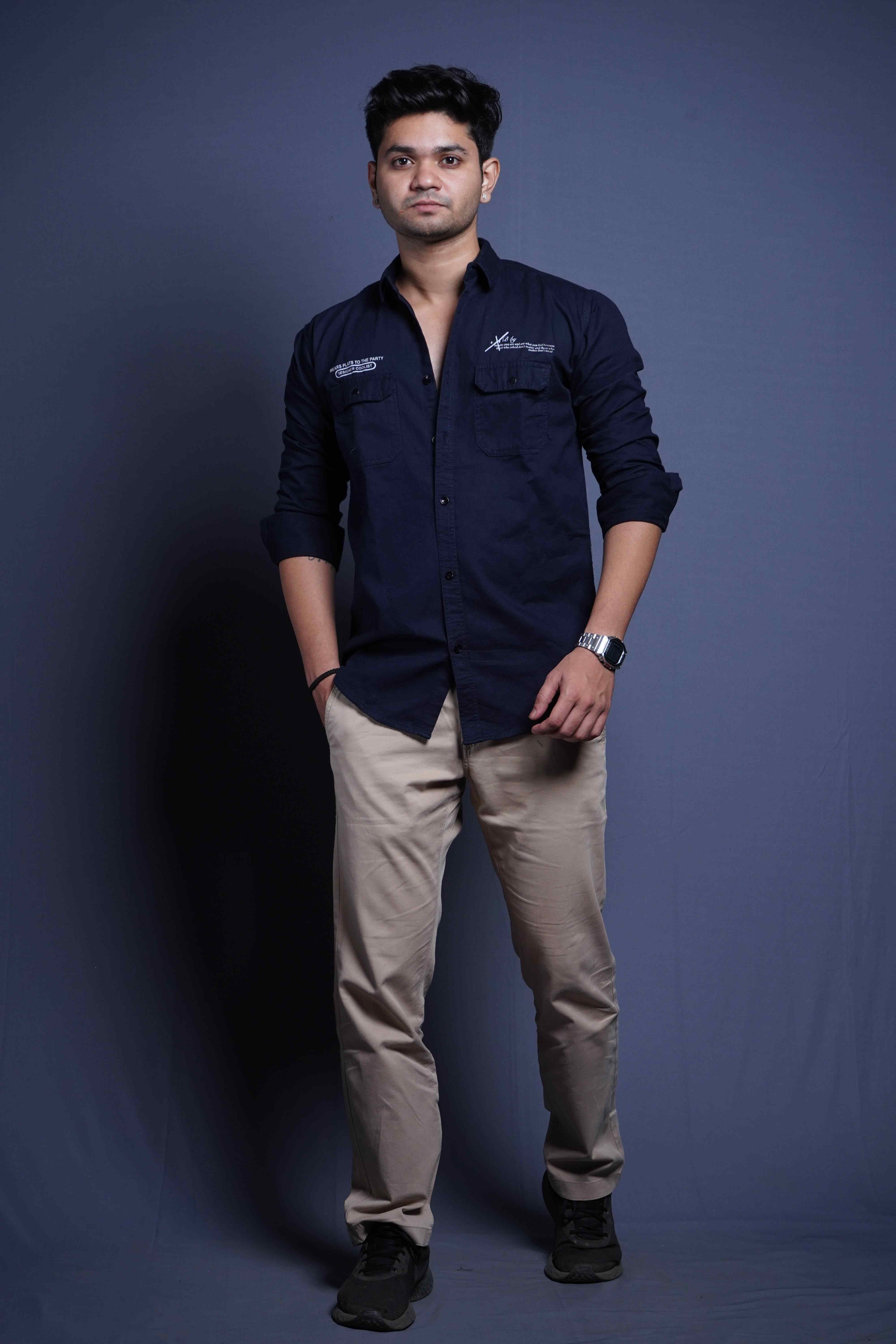 One Denim Elegant Dark Blue Cotton Casual Shirt