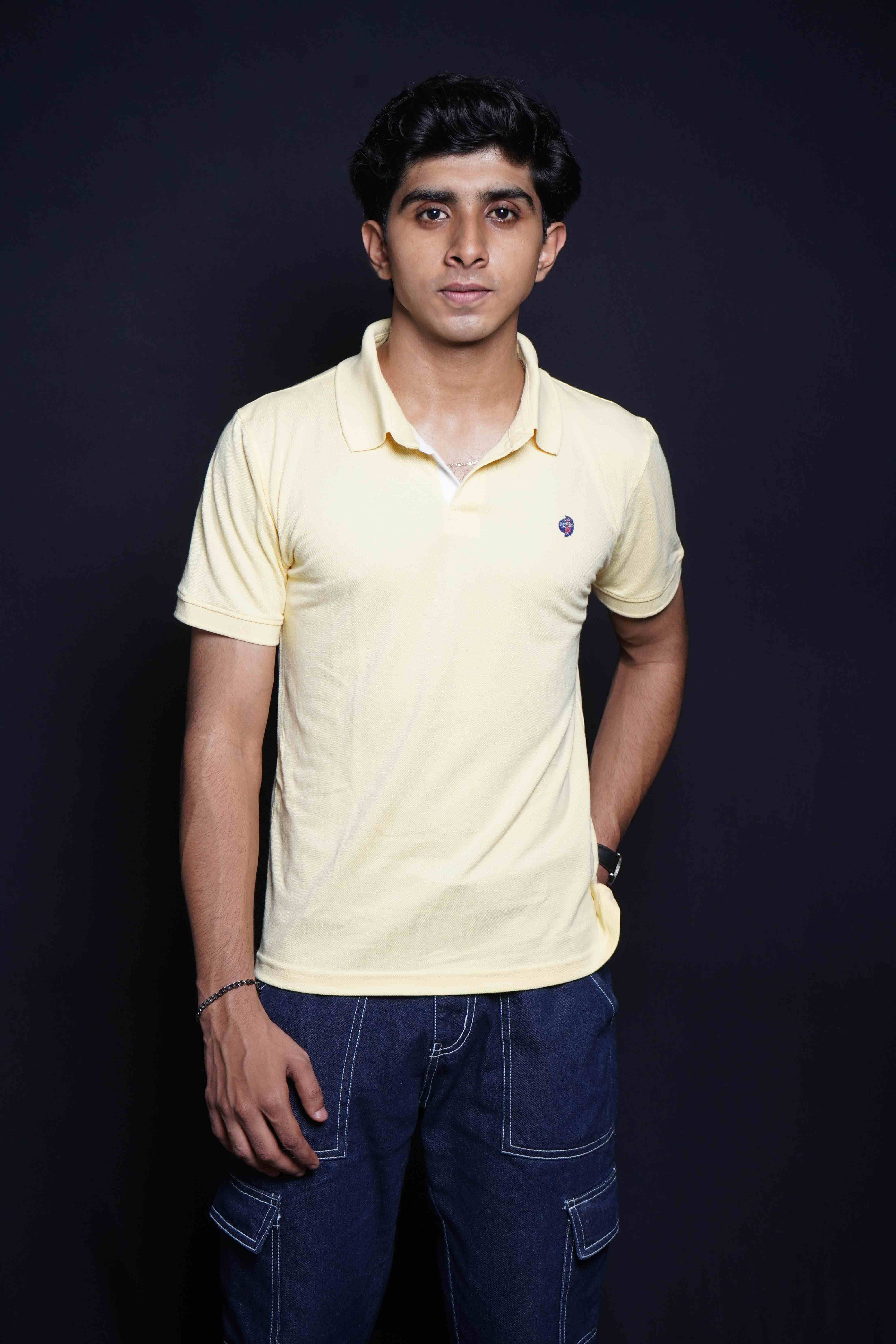 One Denim Sunny Light Yellow Plain Polo Neck Cotton T-Shirt