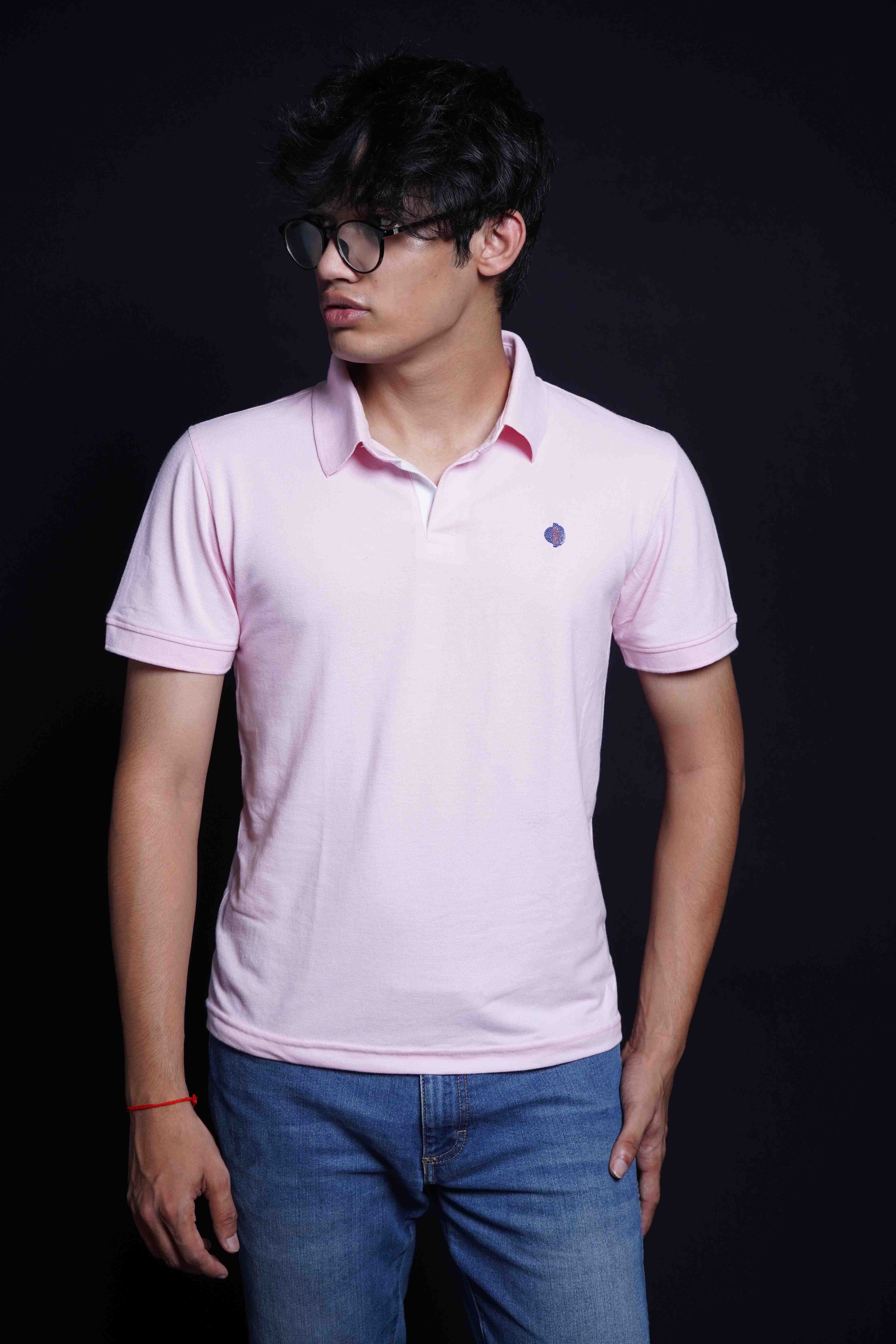 One Denim Delicate Light Pink Plain Polo Neck Cotton T-Shirt