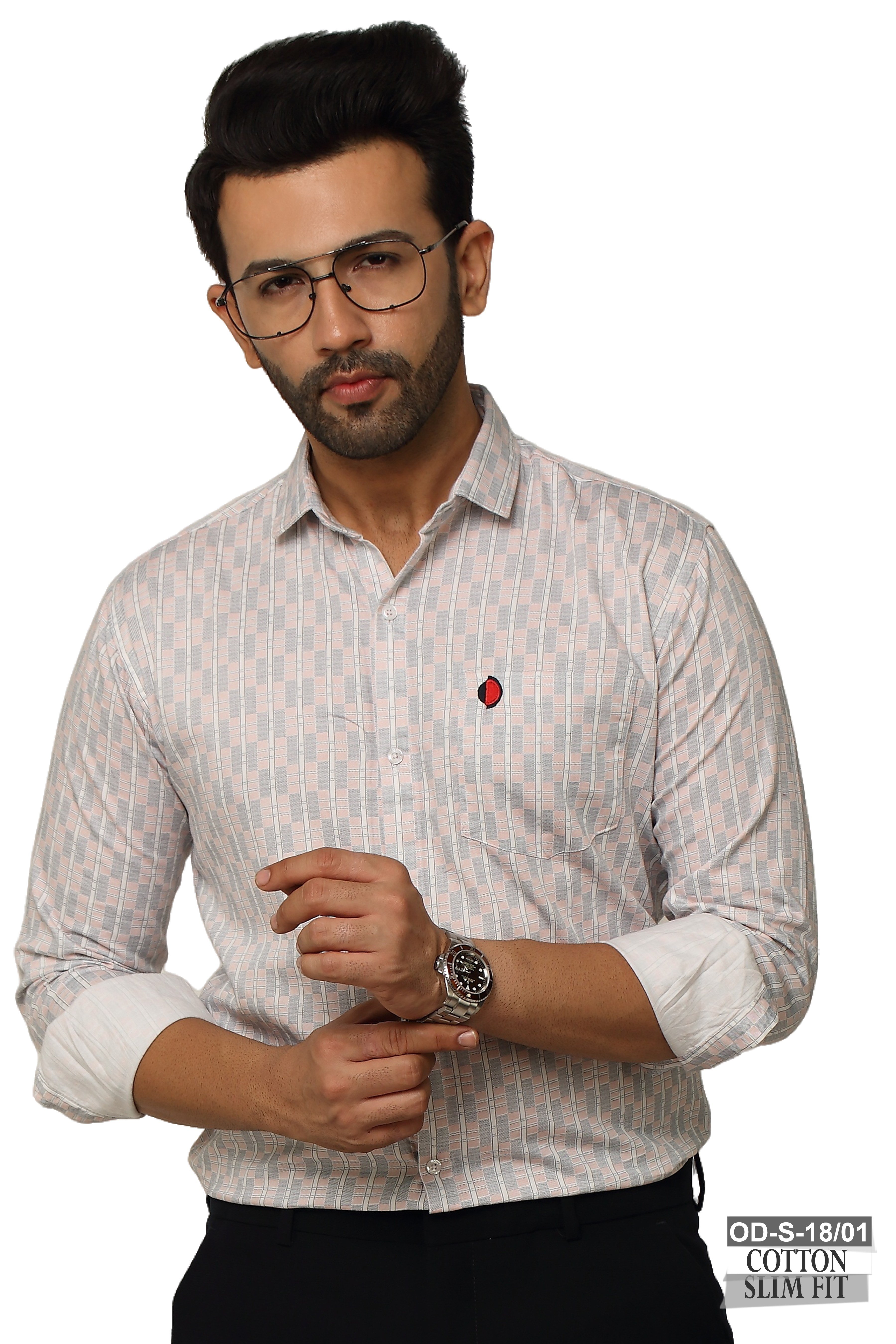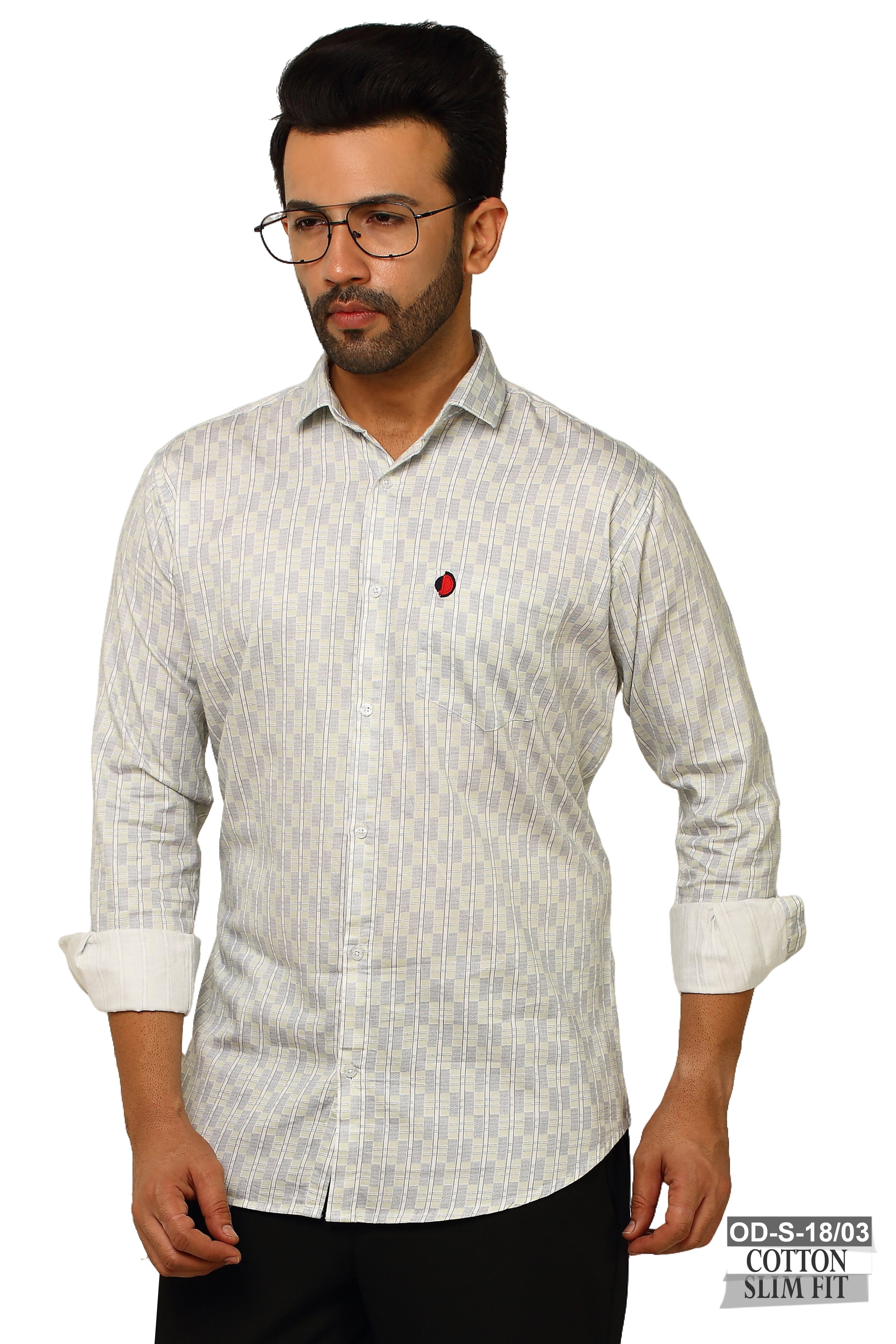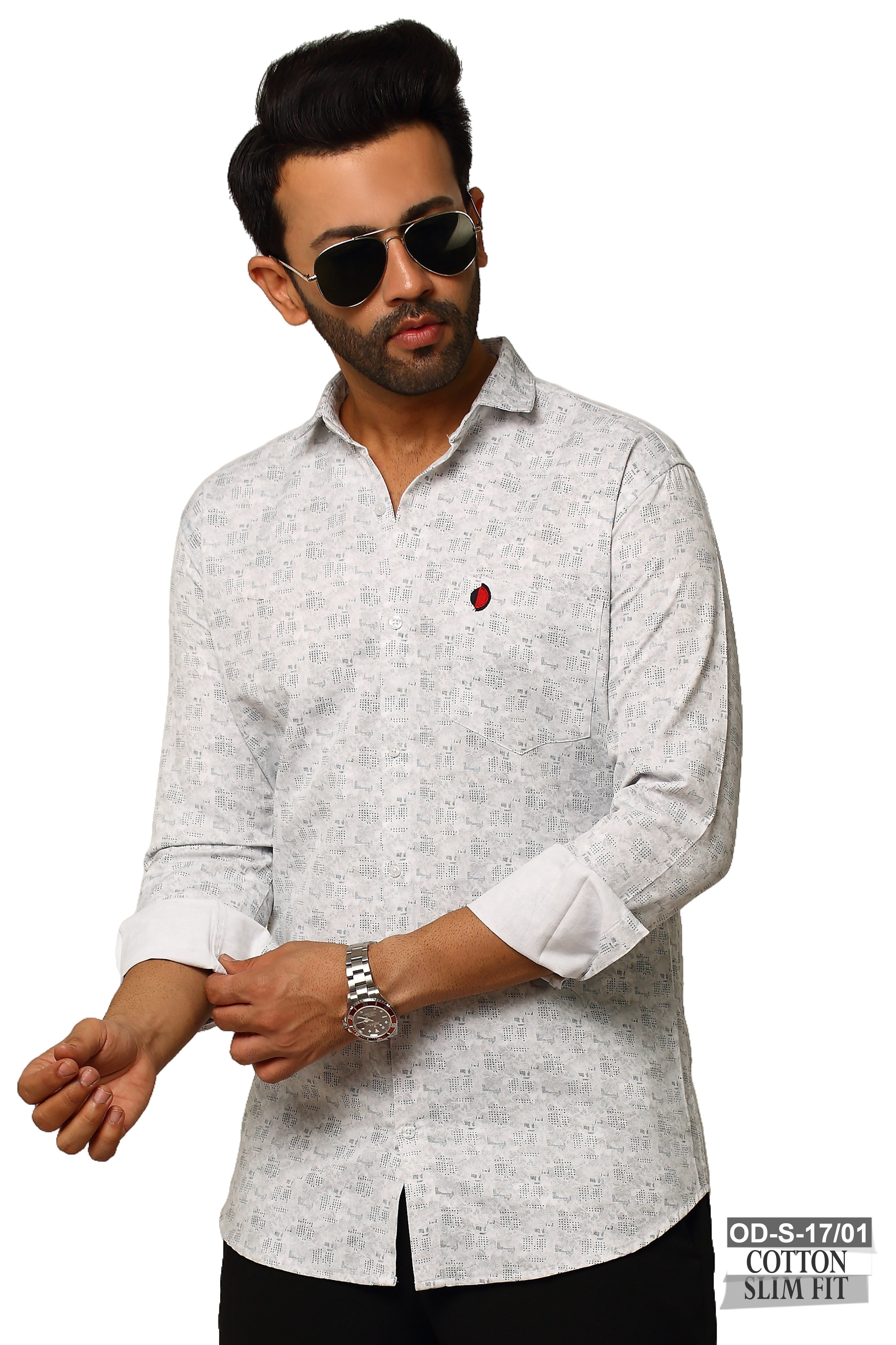 One Denim Printed Men Casual Shirts Cotton Cool Cream