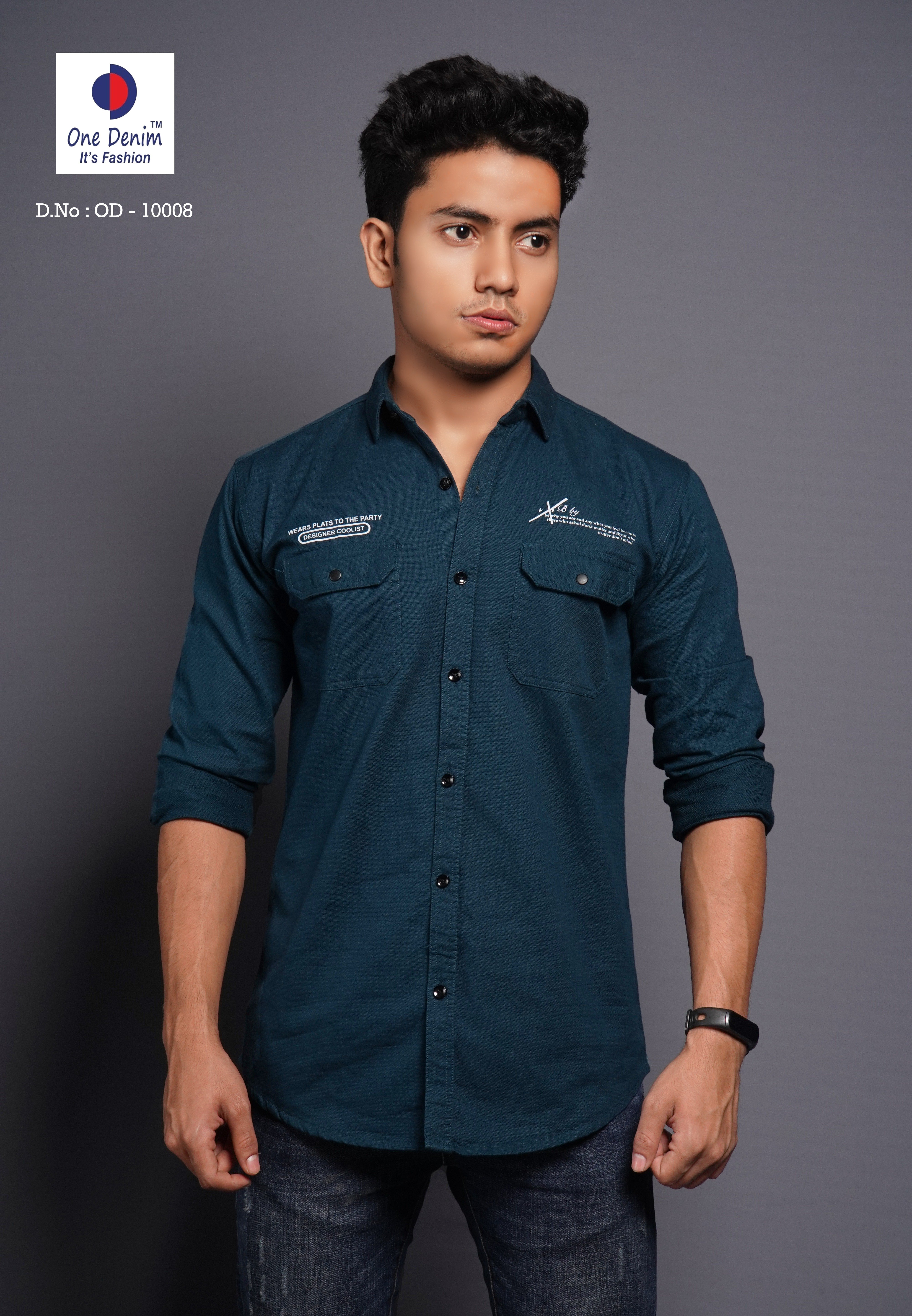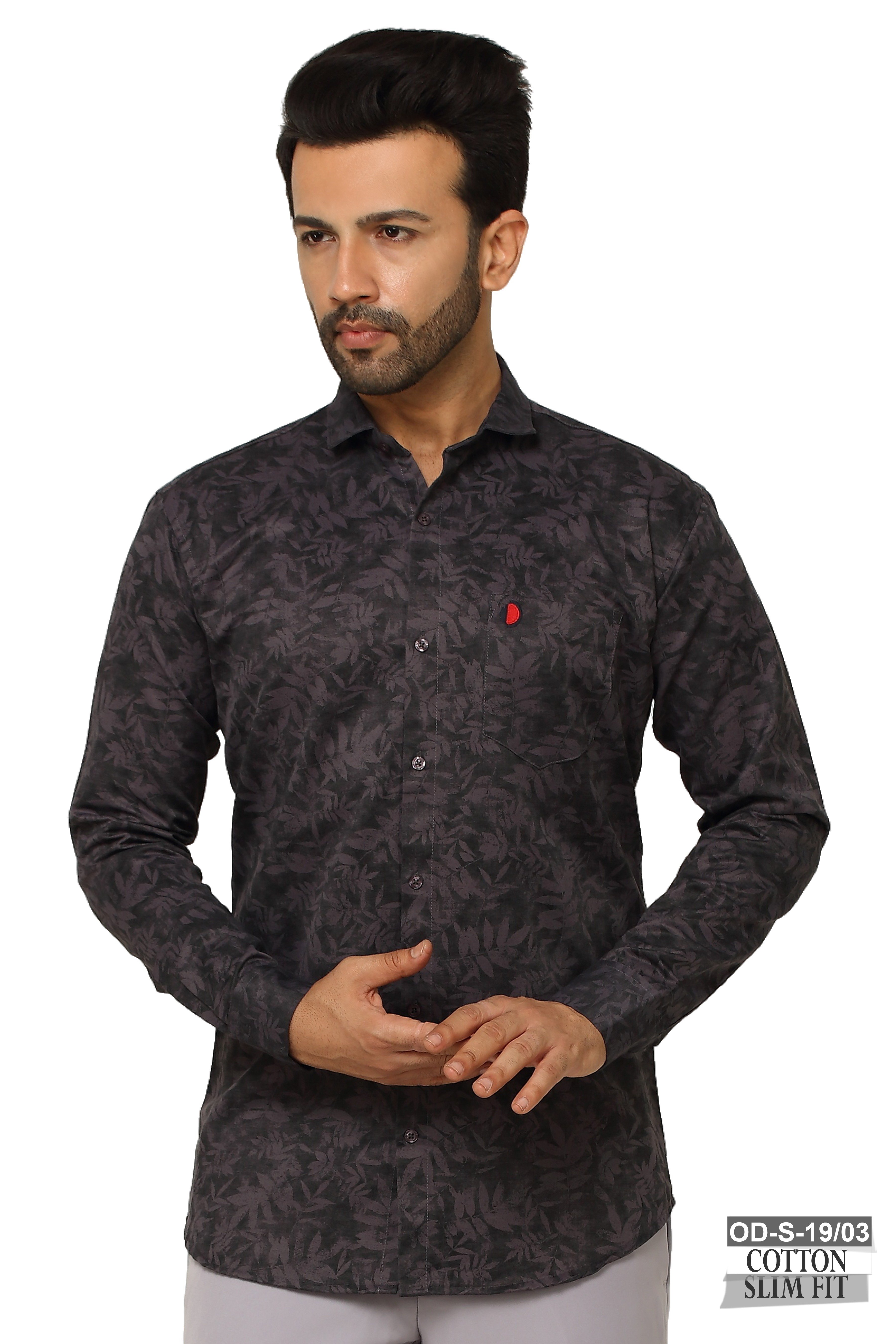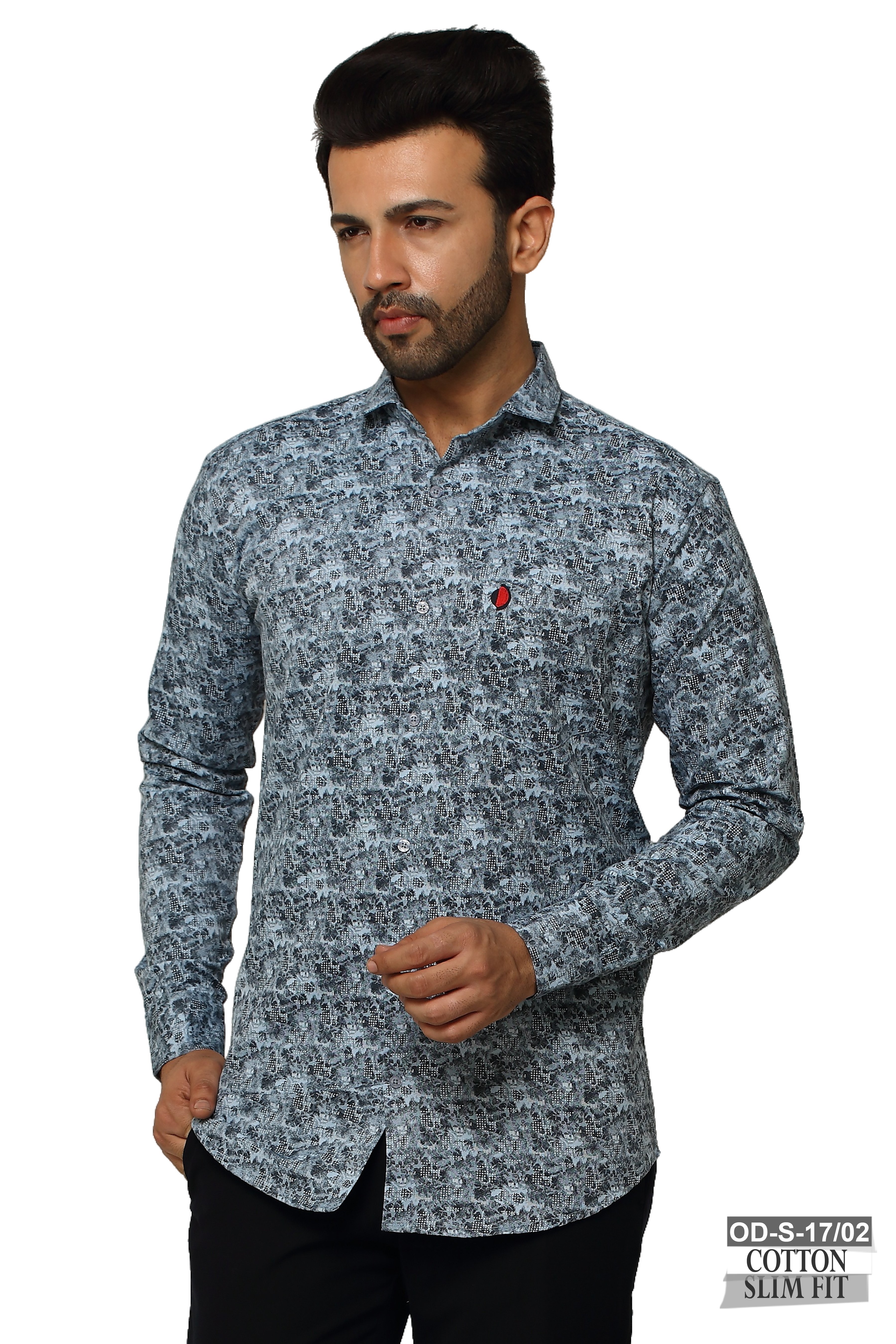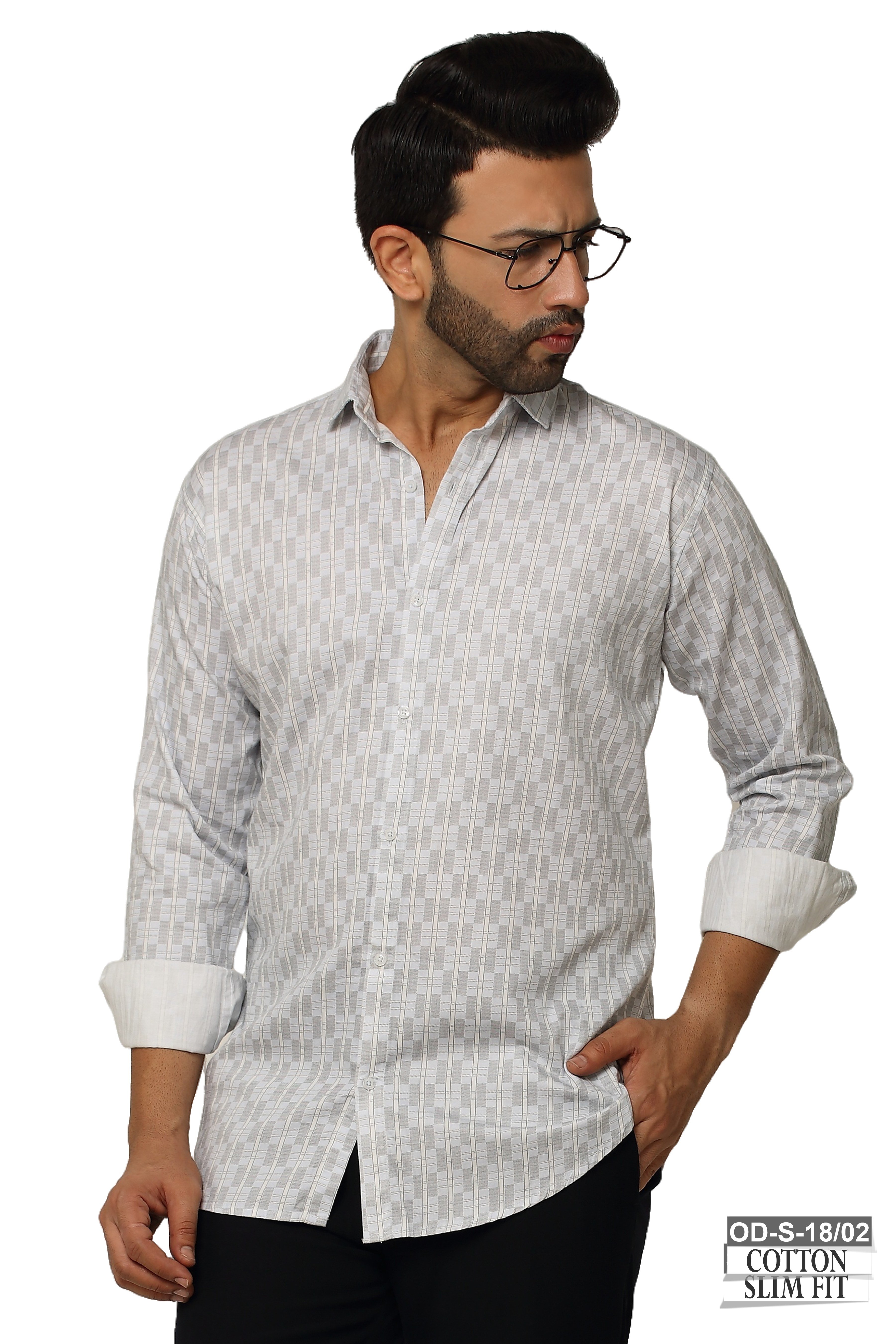 One Denim Printed Men Casual Shirts Cotton Cool Cream