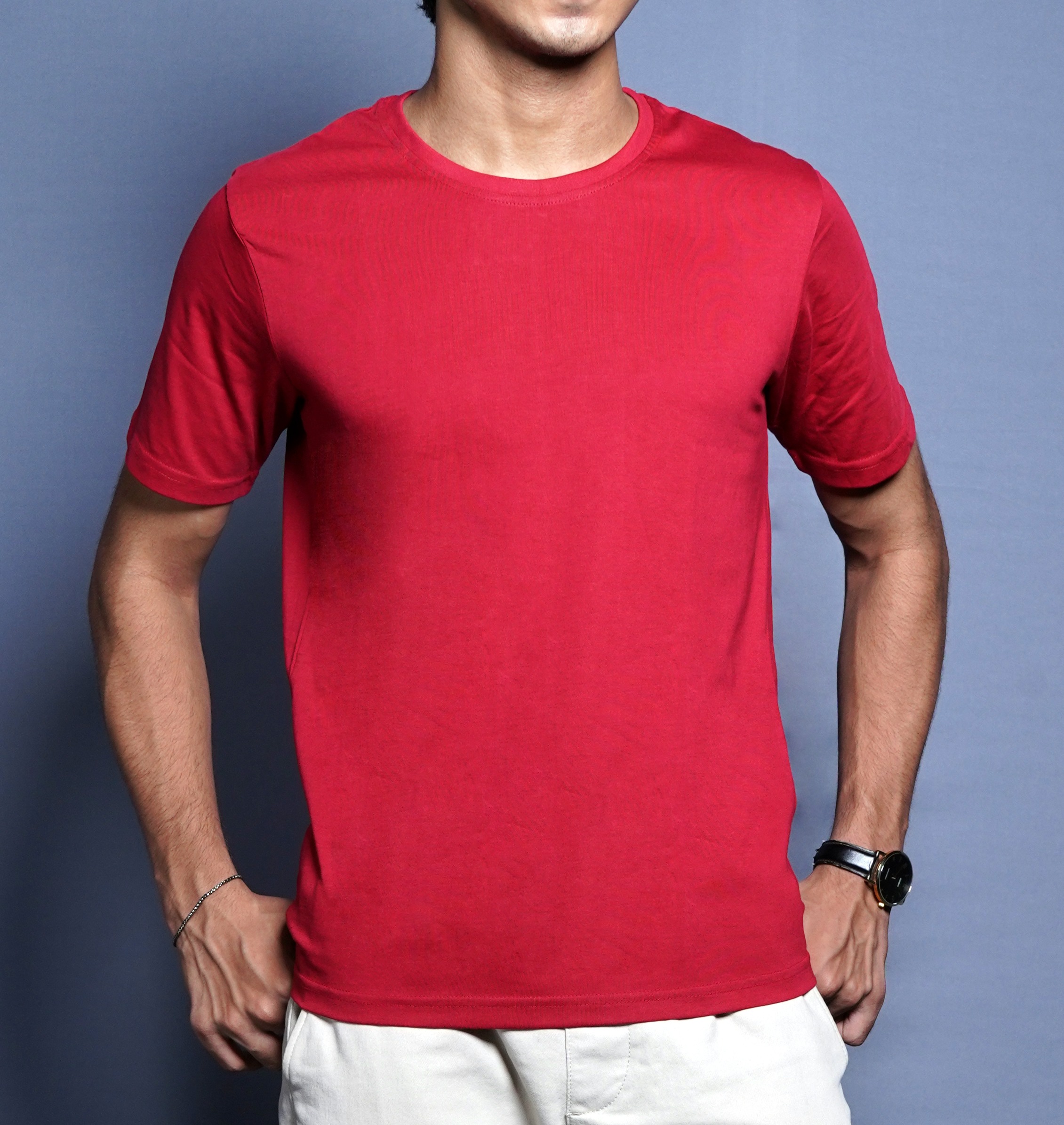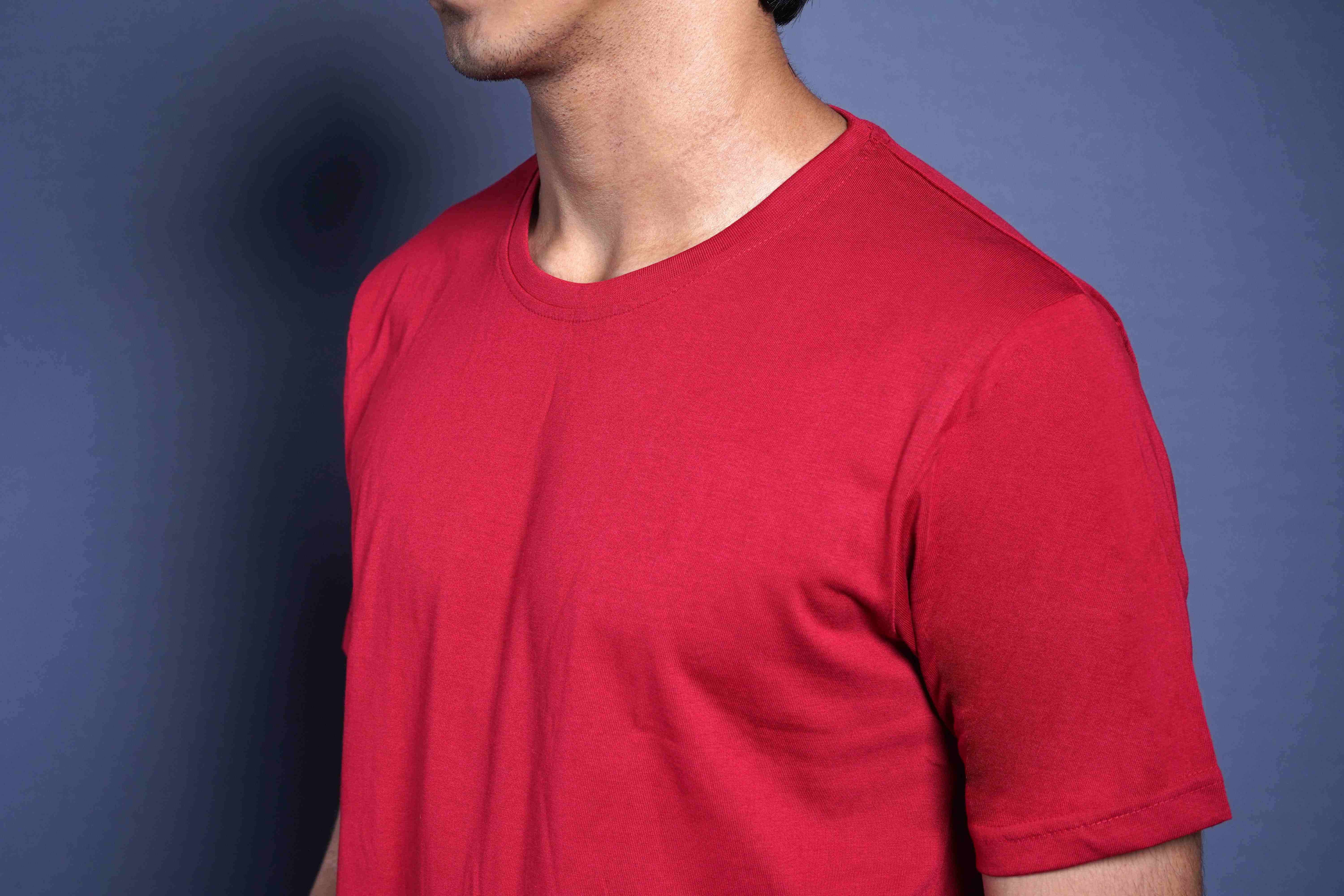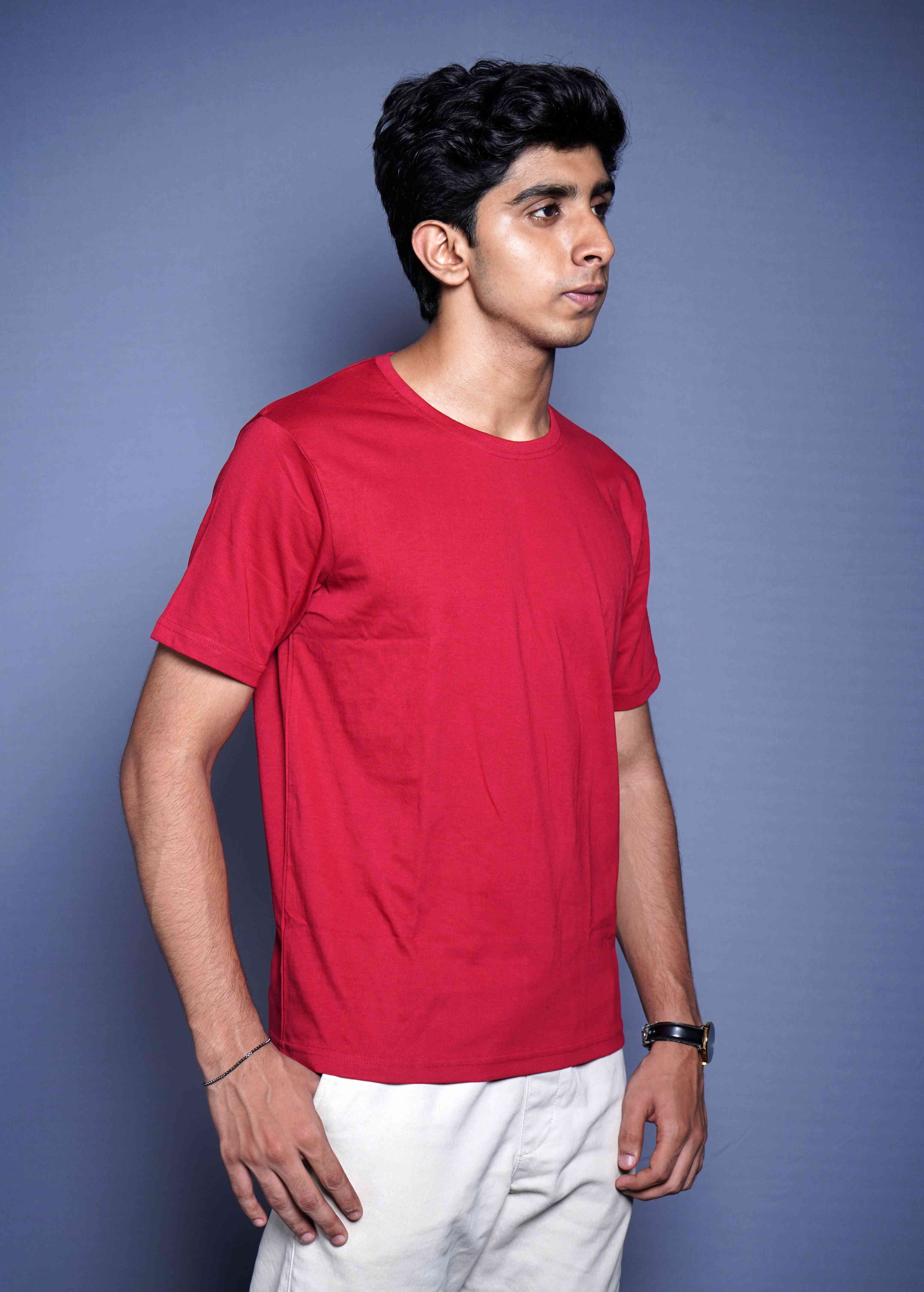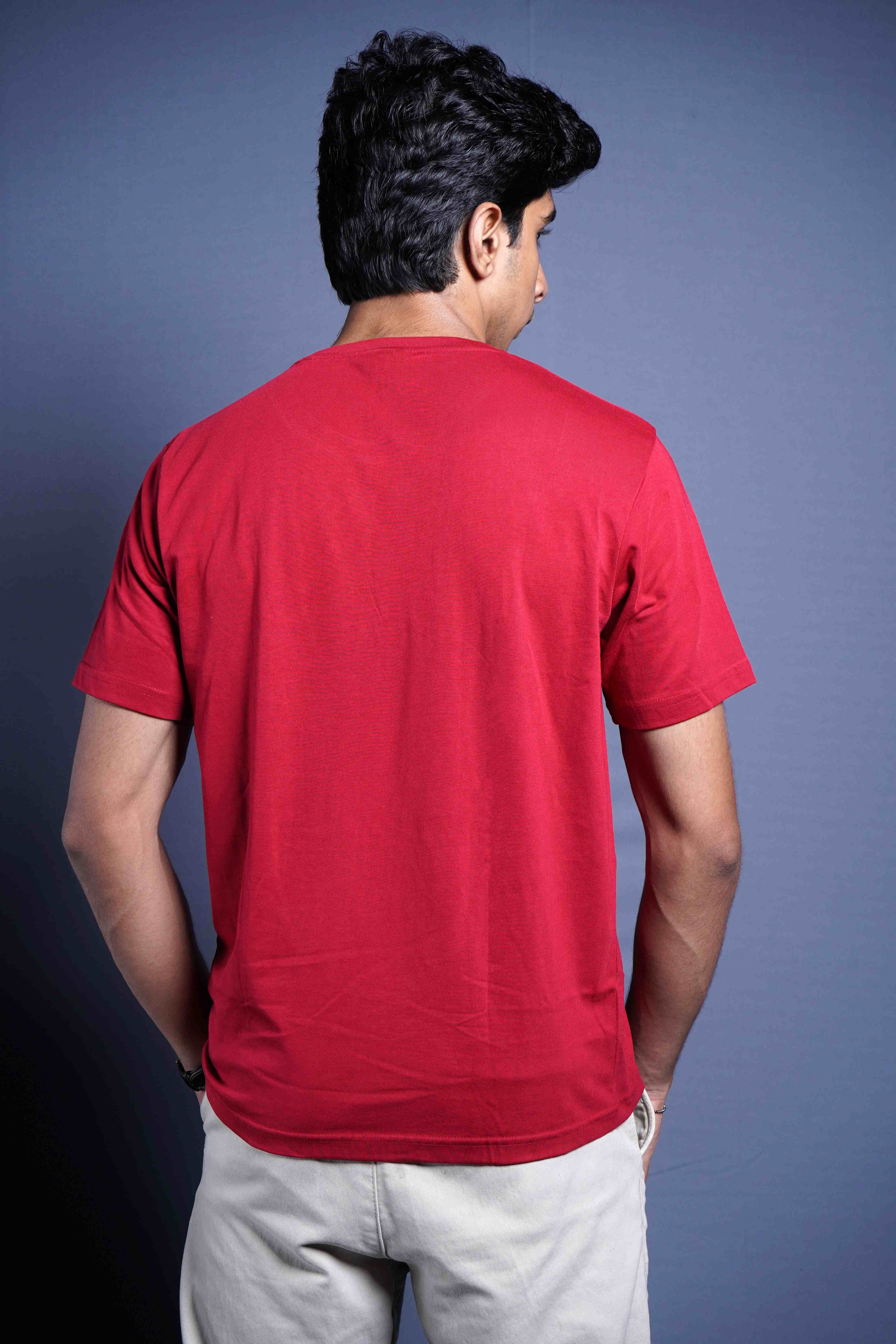One Denim Classic Red Round Neck Cotton T-Shirt
