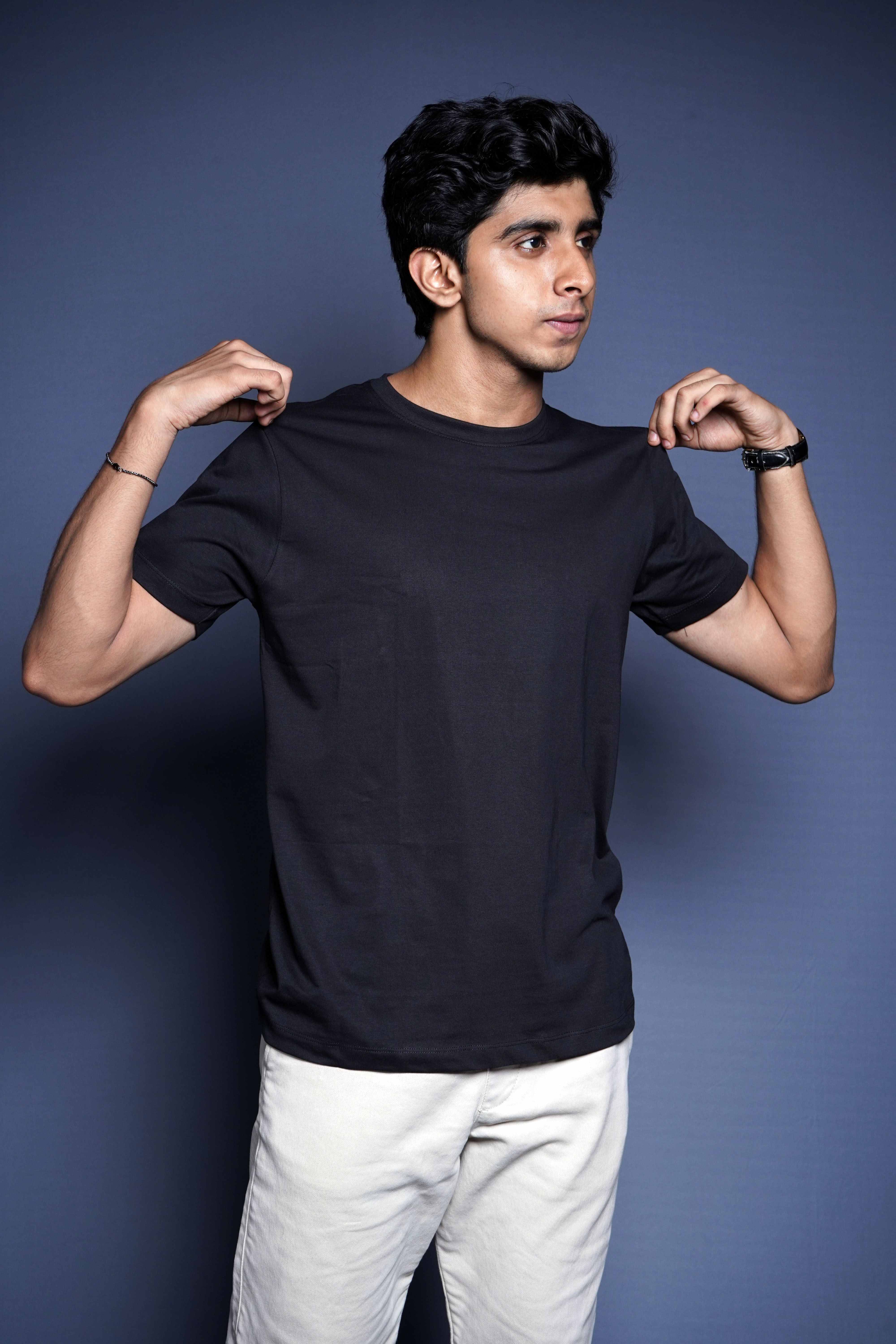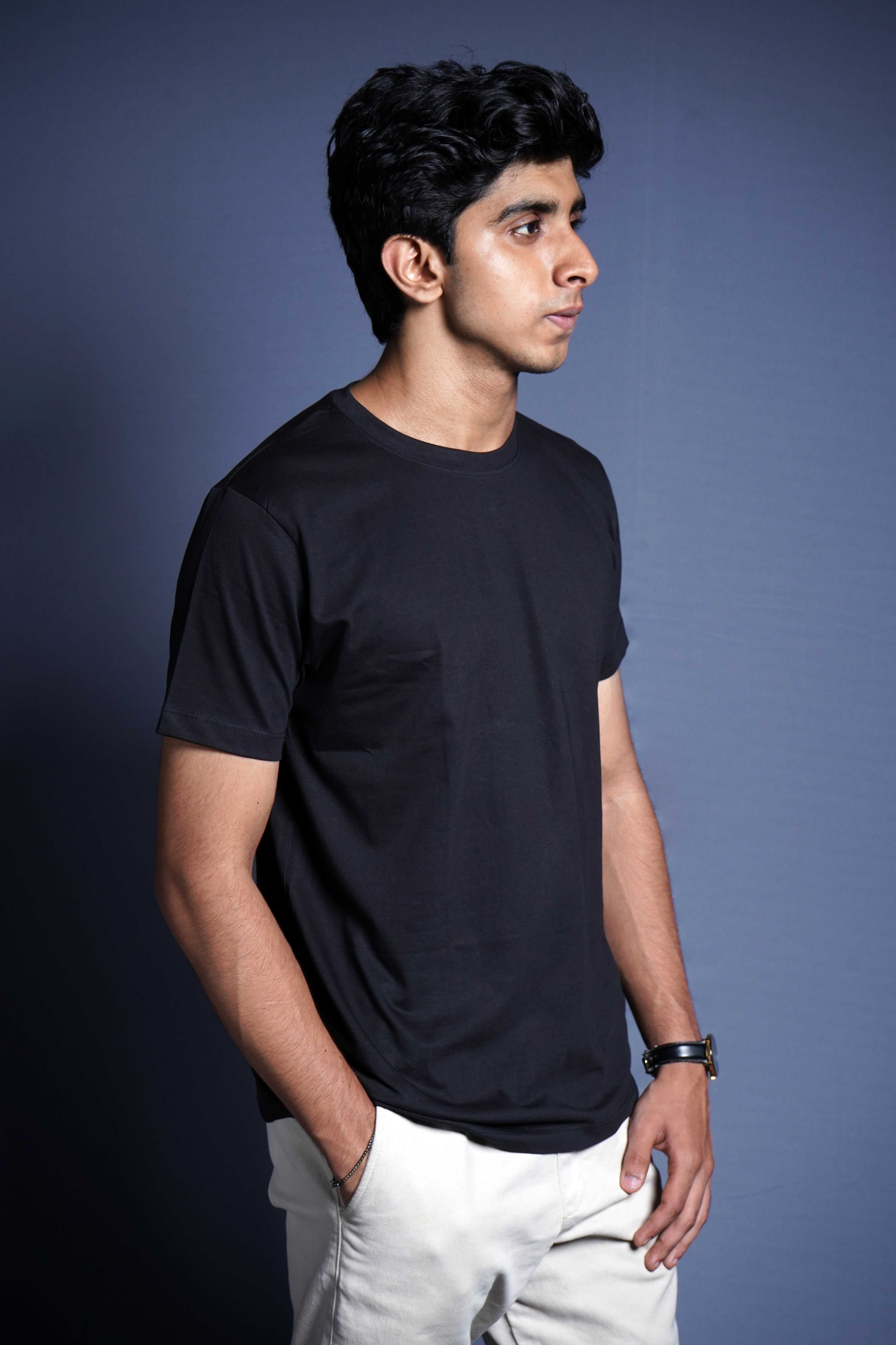Crafted from premium 100% cotton, this t-shirt offers unparalleled softness and breathability, making it the perfect choice for everyday wear. The versatile black color seamlessly transitions from day to night, while the classic round neck design ensures a comfortable and flattering fit. Whether you're running errands, meeting friends, or simply relaxing at home, this t-shirt will quickly become your go-to staple for laid-back style and effortless comfort.