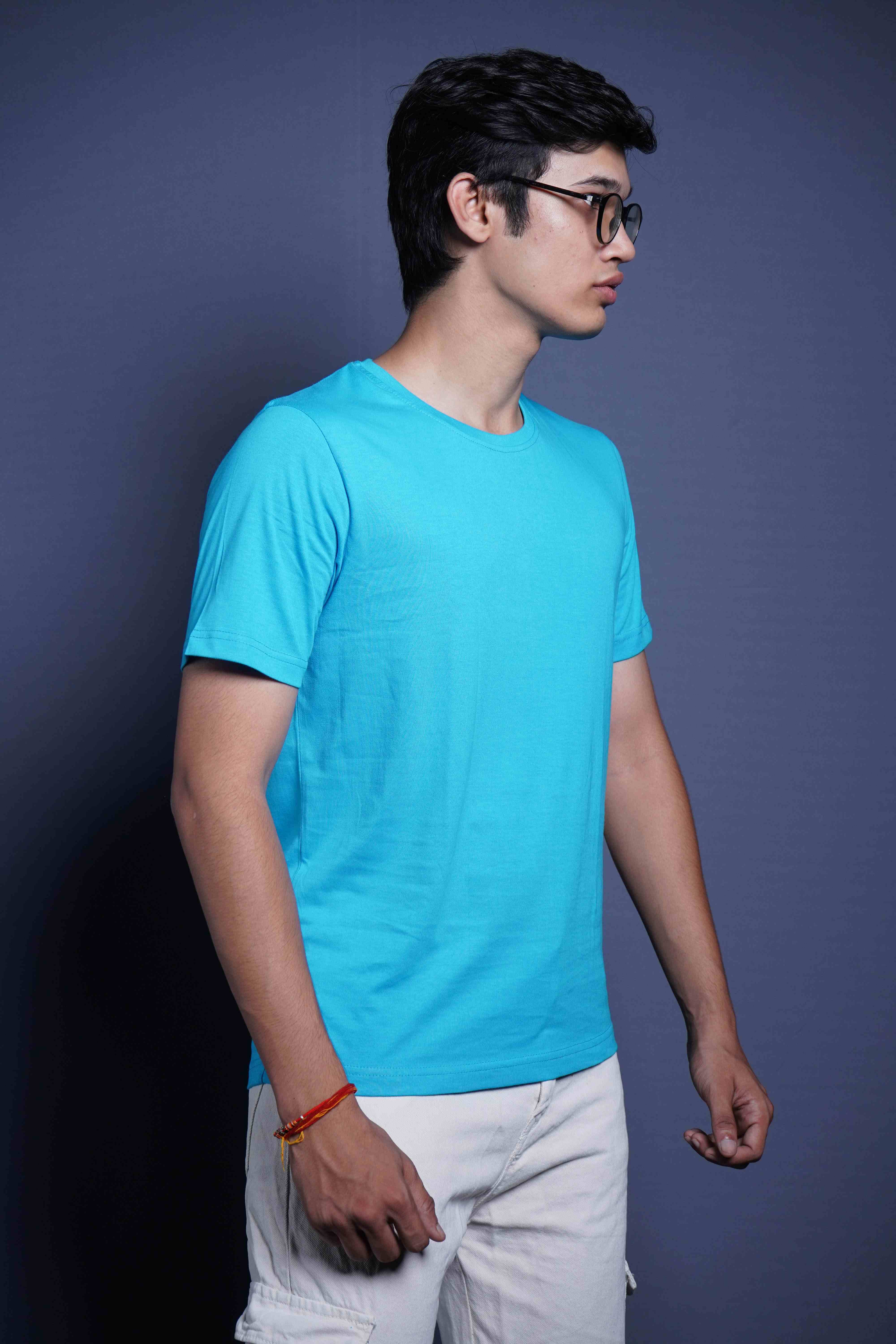 This soothing shade of green evokes a sense of peace and harmony, while the soft and breathable cotton ensures all-day comfort. The classic round neck design adds a touch of timeless elegance, making this t-shirt a versatile addition to your casual wardrobe. Whether you're strolling through a park, enjoying a cup of tea, or simply relaxing at home, this t-shirt will radiate tranquility and put you at ease.