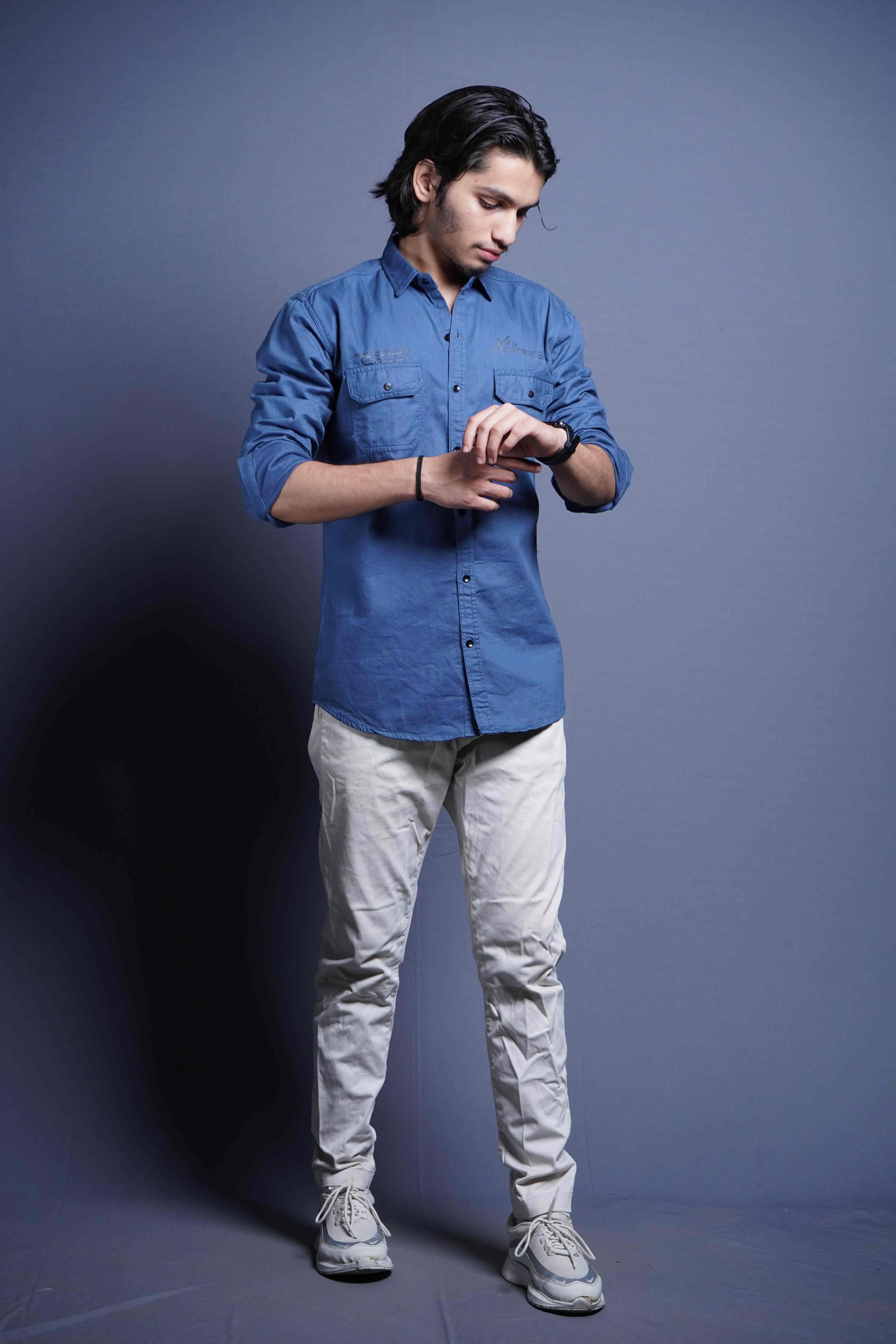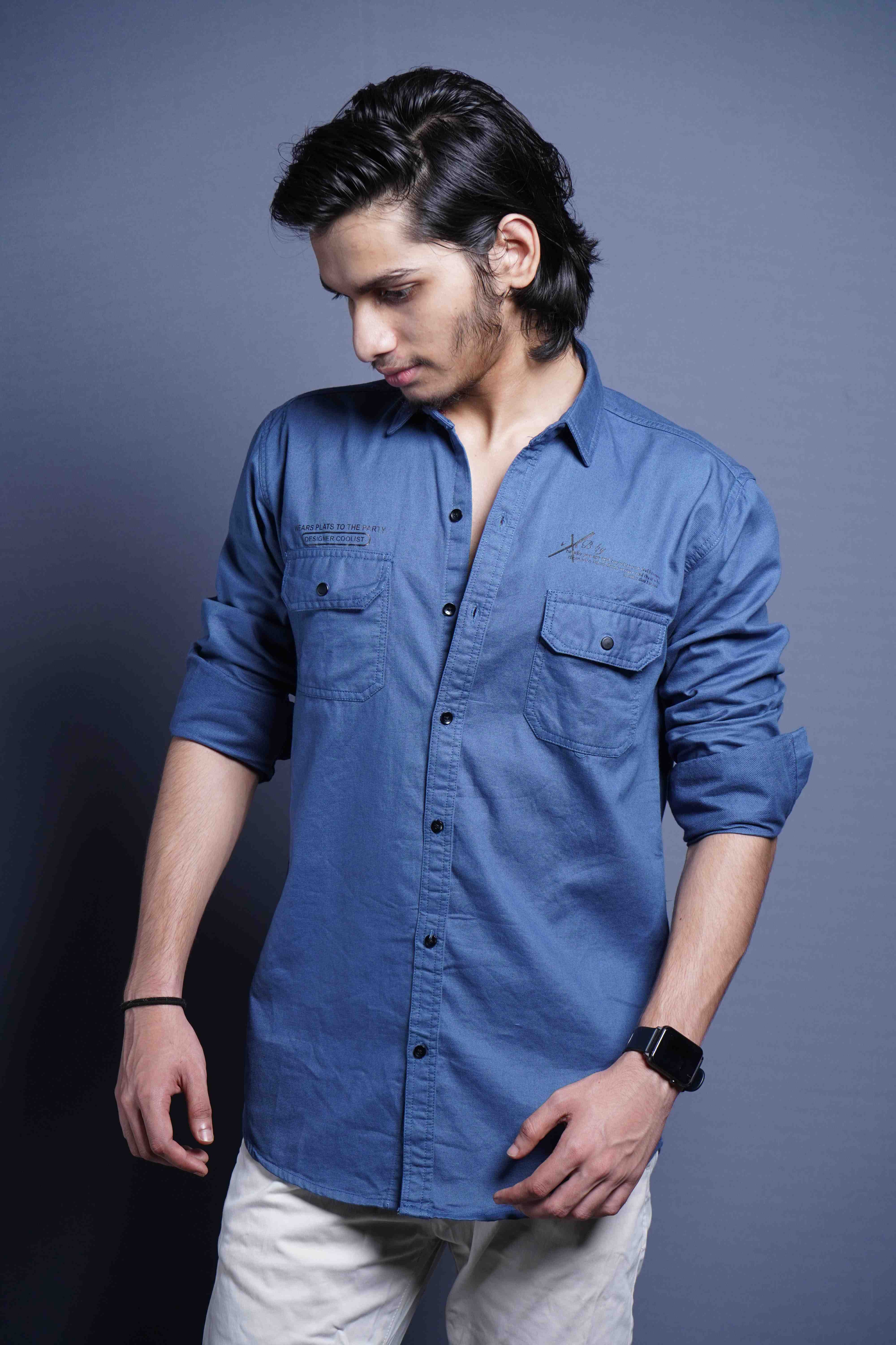 Introducing our Versatile Blue Cotton Casual Shirt, a wardrobe essential for the modern man. Crafted from premium cotton, this shirt combines a stylish design with comfort for a look that effortlessly transitions from casual outings to laid-back evenings.